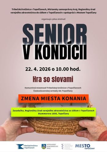 Od stredy 11.3.2026 organizuje Tribečská knižnica v spolupráci s Regionálnym úradom verejného zdravotníctva a Mestom Topoľčany sériu podujatí pod názvom Senior v kondícii. Jedná sa o štyri stretnutia určených predovšetkým pre seniorov...