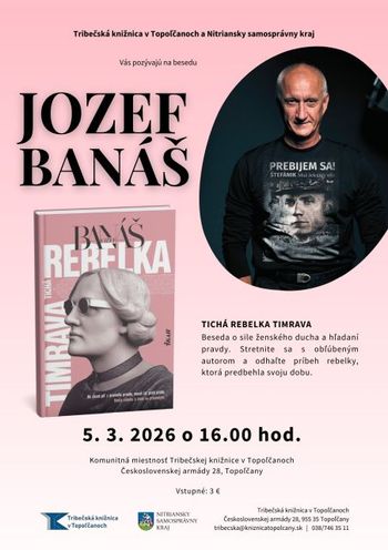 Pozývame Vás na besedu s Jozefom Banášom, ktorá sa uskutoční vo štvrtok 5.3.2026 o 16:00 h v komunitnej miestnosti Tribečskej knižnice. Jozef Banáš navštívil našu knižnicu v roku 2024 a jeho rozprávanie o Aurelovi Stodolovi sa stretlo s veľkým záujmom verejnosti.