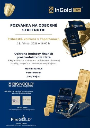 Pozývame Vás na odborné stretnutie, ktoré sa uskutoční v stredu 18.2.2026 o 16:00 h v komunitnej miestnosti Tribečskej knižnice. Témou stretnutia bude "ochrana hodnoty financií prostredníctvom zlata". Dozviete sa informácie, ako chrániť svoje úspory pred infláciou a ekonomickou nestabilitou. Odborné rady ale i odpovede na Vaše otázky poskytnú Martin Varmus, Peter Paulen a Juraj Bajcar.