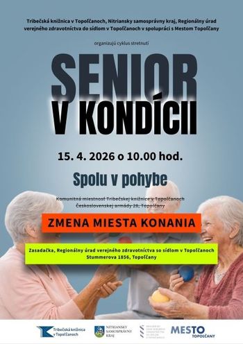 Od stredy 11.3.2026 organizuje Tribečská knižnica v spolupráci s Regionálnym úradom verejného zdravotníctva a Mestom Topoľčany sériu podujatí pod názvom Senior v kondícii. Jedná sa o štyri stretnutia určených predovšetkým pre seniorov, pre ktorých sú pripravené nové aktivity zamerané na udržanie mysle i tela v dobrej kondícii. Témou a názov prvého stretnutia je Pamäť v rytme. Podujatie začína o 10:00 h.
